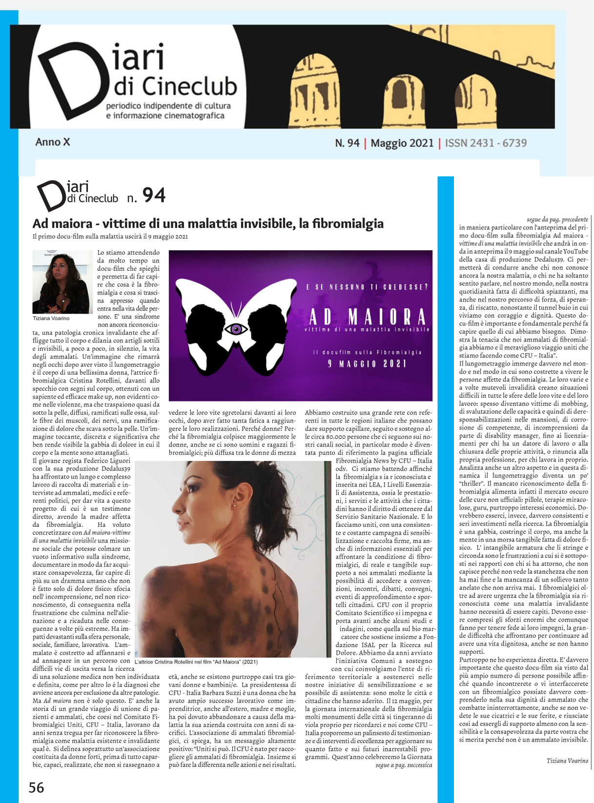 Ringraziamo Tiziana Voarino per questo bellissimo articolo sul Docufilm “AD MAIORA – Vittime di una malattia invisibile” pubblicato su “Diari di Cineclub”.