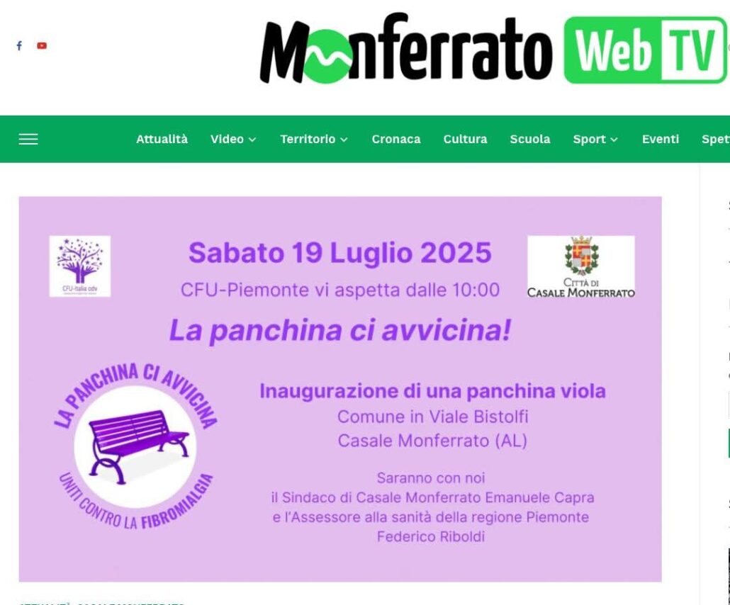 https://www.cfuitalia.it/wp-content/uploads/2025/07/facebook_1753344457908_7354059673185502966.jpg8961081albertolippohttps://www.cfuitalia.it/wp-content/uploads/2021/09/logo_web-2-1.pngalbertolippo2025-07-18 08:07:232025-08-04 13:00:11(MONFERRATO WEB TV) UNA PANCHINA VIOLA IN VIALE BISTOLFI PER RICORDARE CHE LA FIBROMIALGIA ESISTE