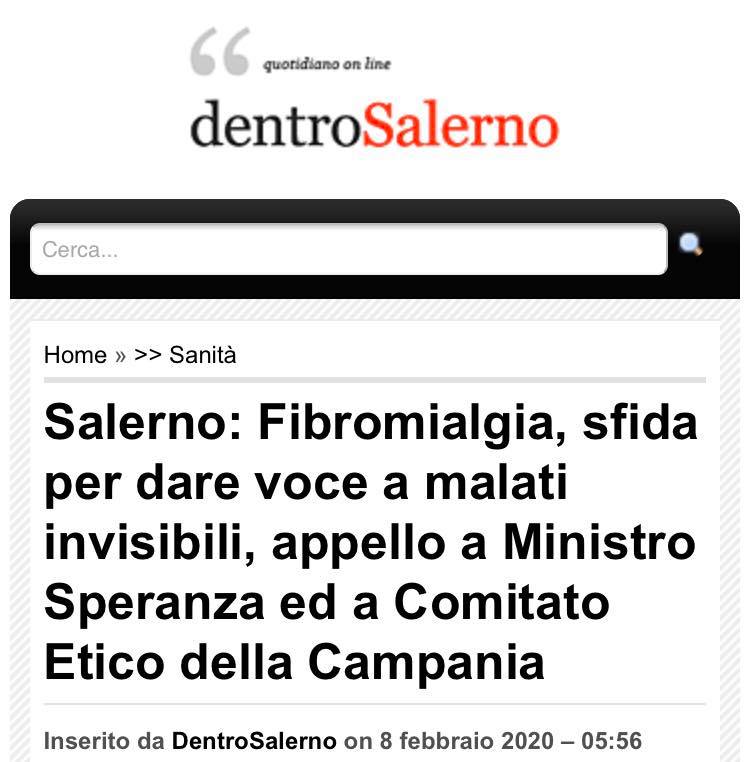 Salerno: Fibromialgia, sfida per dare voce a malati invisibili, appello a Ministro Speranza ed a Comitato Etico della Campania