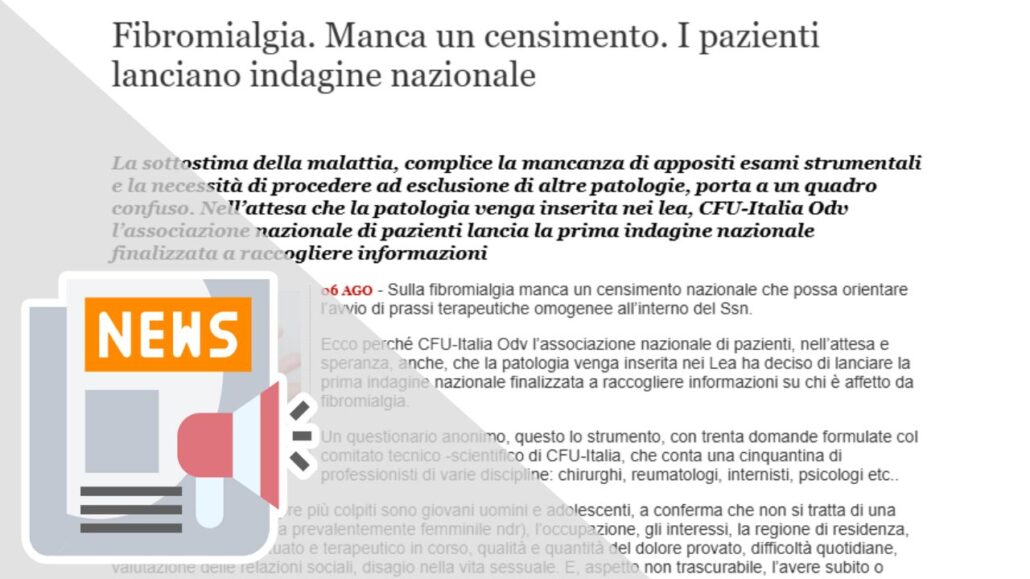 https://www.cfuitalia.it/wp-content/uploads/2025/08/ANTEPRIMA-ARTICOLI-RASSEGNA-STAMPA-3.jpg7201280albertolippohttps://www.cfuitalia.it/wp-content/uploads/2021/09/logo_web-2-1.pngalbertolippo2025-08-06 09:50:322025-08-07 09:52:11(QUOTIDIANOSANITA’.IT) FIBROMIALGIA. MANCA UN CENSIMENTO. I PAZIENTI LANCIANO INDAGINE NAZIONALE