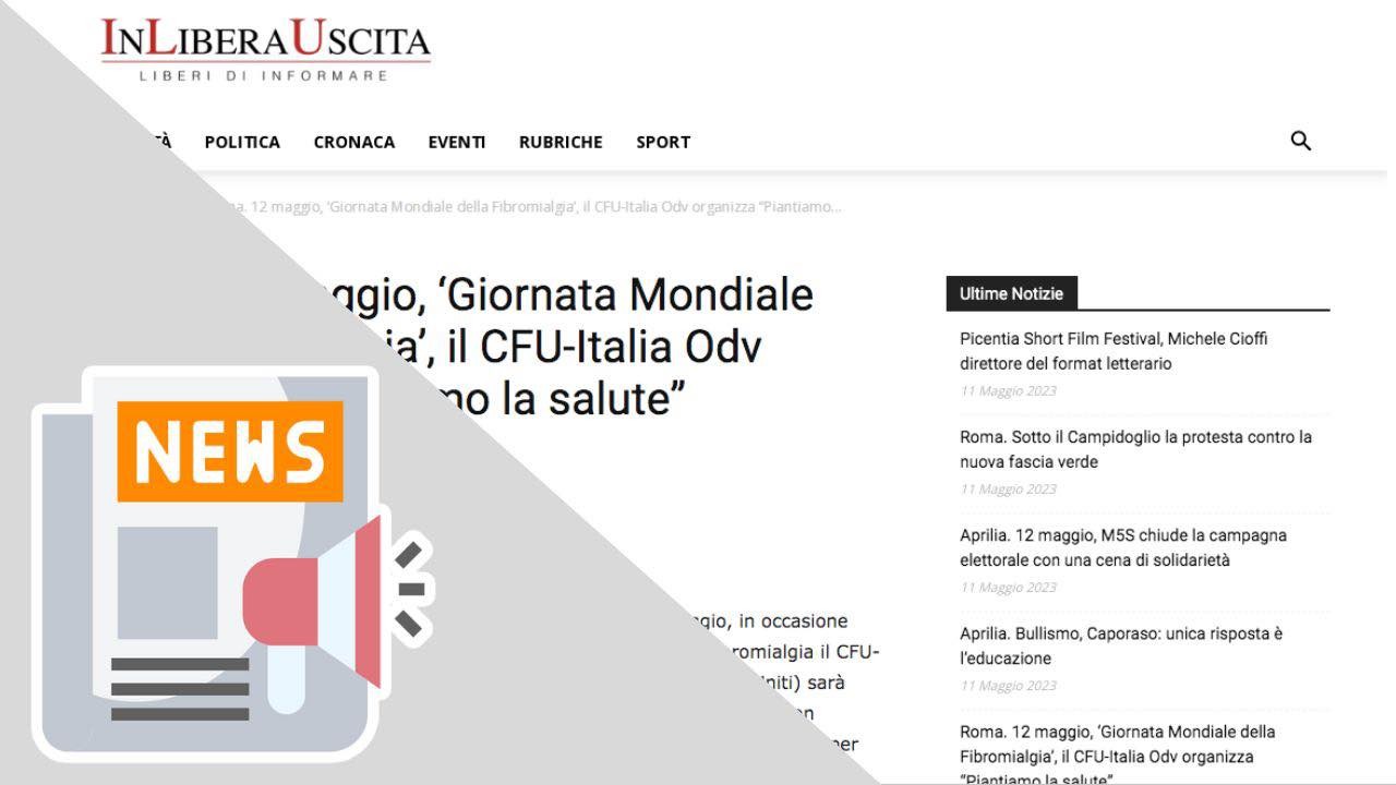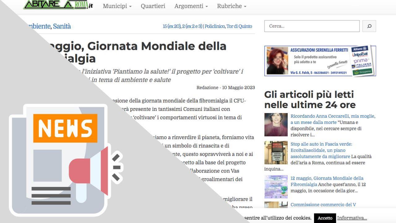 /in Eventi, Fibromialgia, News, Rassegna Stampa(IN LIBERA USCITA) ROMA. 12 MAGGIO, ‘GIORNATA MONDIALE DELLA FIBROMIALGIA’, IL CFU-ITALIA ODV ORGANIZZA “PIANTIAMO LA SALUTE”