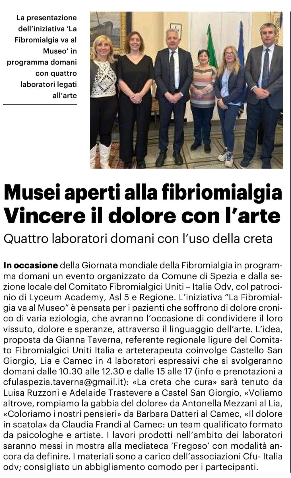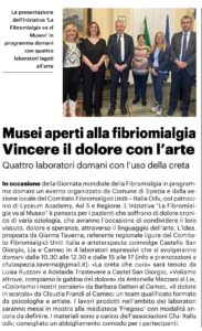 (LA GAZZETTA DELLA SPEZIA) LA FIBROMIALGIA VA AL MUSEO: LABORATORI ESPRESSIVI SUL DOLORE CRONICO PRESSO I MUSEI CIVICI