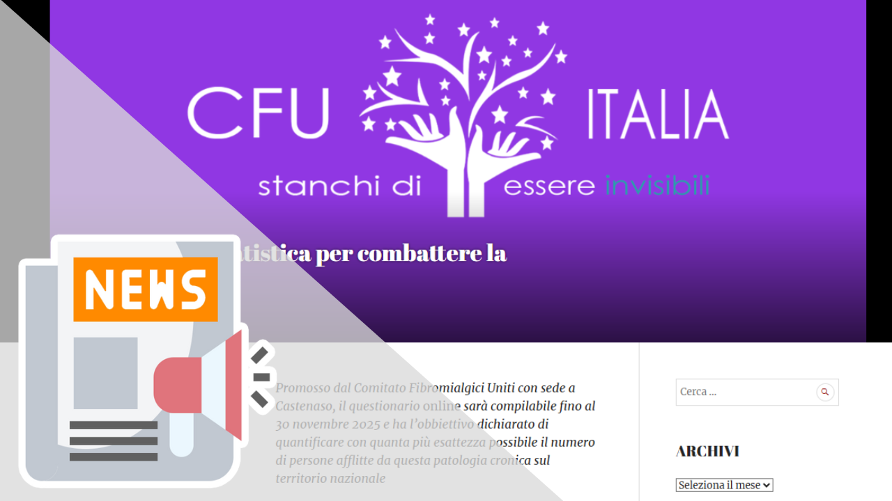 FIBROMIALGIA: IL PRIMO CENSIMENTO NAZIONALE LANCIATO DALL’ASSOCIAZIONE CFU-ITALIA ODV