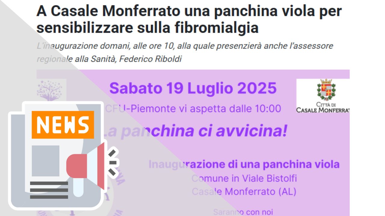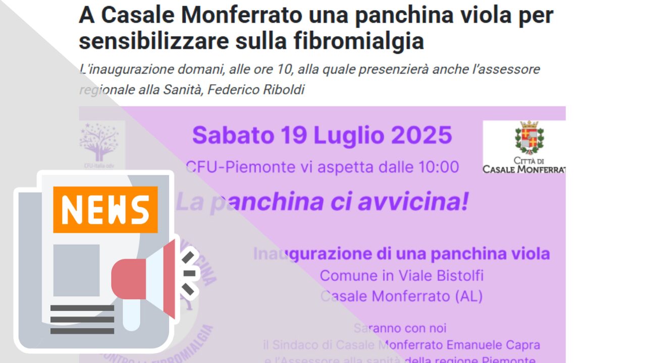 (CASALE NOTIZIE) FIBROMIALGIA: A CASALE MONFERRATO LA PANCHINA VIOLA DI CFU-ITALIA