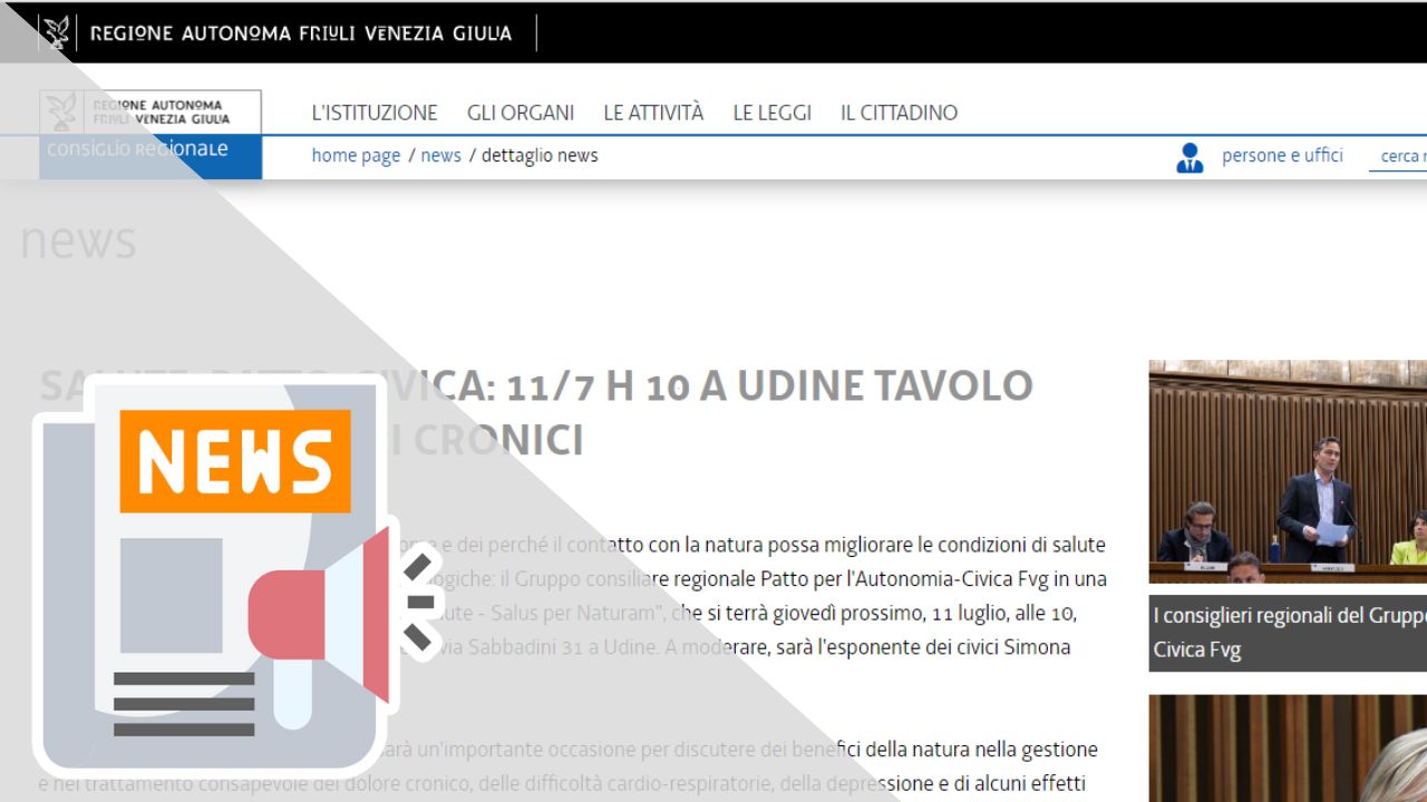 (CONSIGLIOREGIONALE.FVG) SALUTE. PATTO-CIVICA: 11/7 H 10 A UDINE TAVOLO NATURA E DOLORI CRONICI