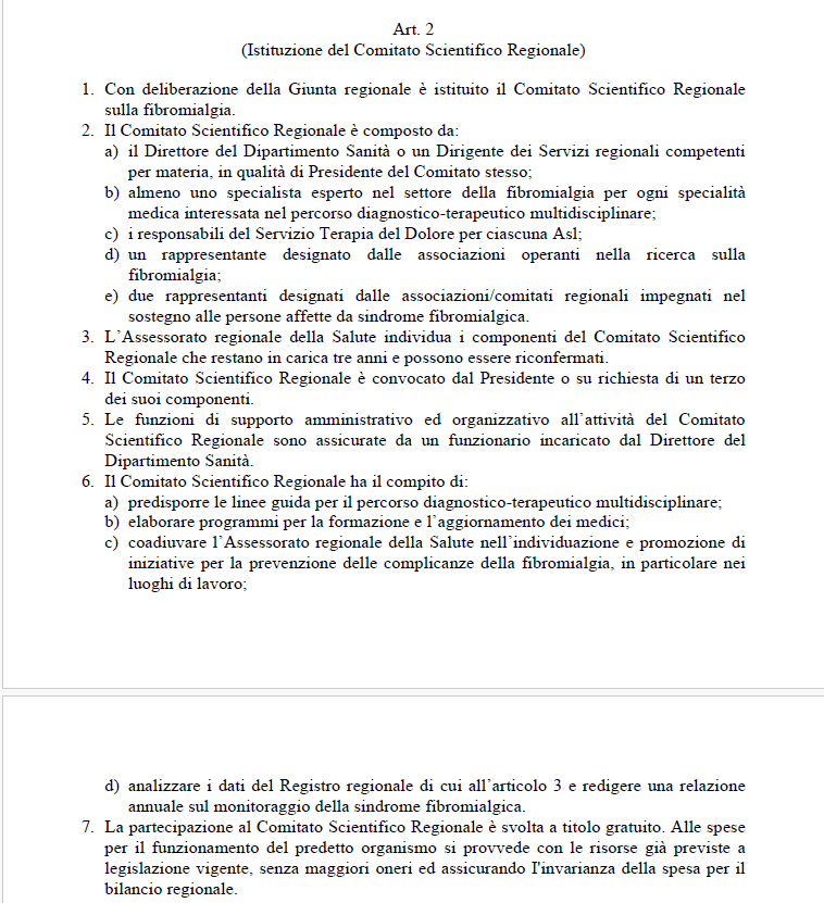 REGIONE ABRUZZO: FIBROMIALGIA – ISTITUZIONE DEL COMITATO SCIENTIFICO REGIONALE