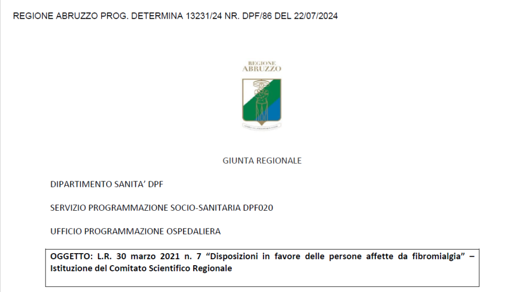 REGIONE ABRUZZO: FIBROMIALGIA – ISTITUZIONE DEL COMITATO SCIENTIFICO REGIONALE